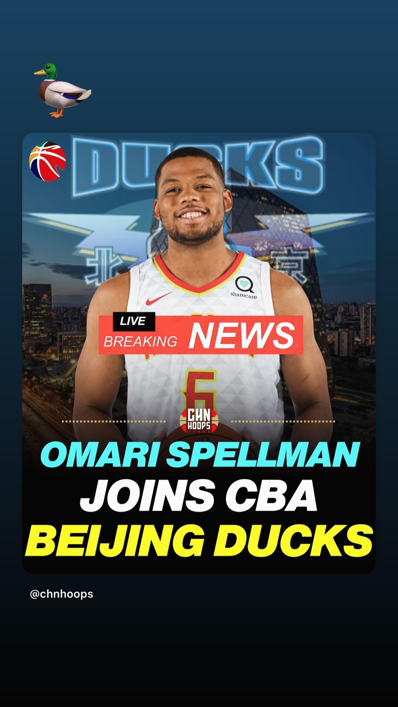 在个人社交媒体,斯佩尔曼转发了多张关于自己确认加盟北京首钢男篮的消息,并在图片中配上了一个“鸭子”的表情。